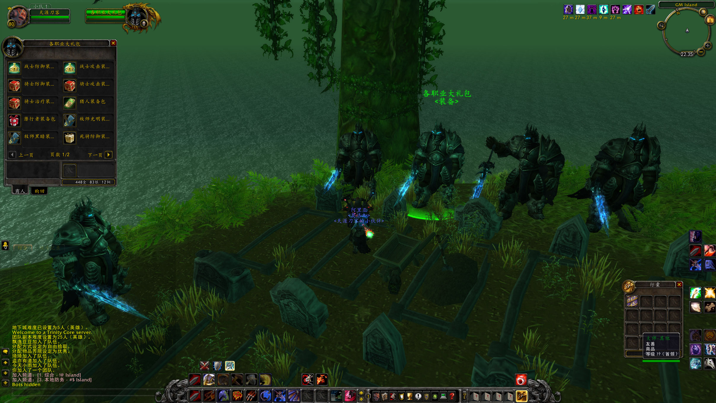 2020.07.05 ①新增GM岛上的5个商人NPC,能够销售每个职业(包括天赋)的套装包