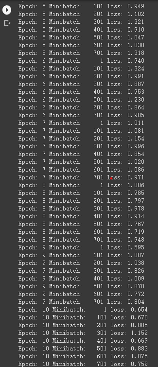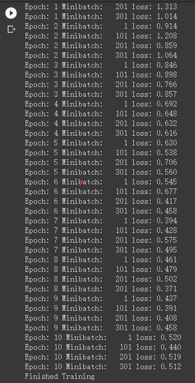 print('Epoch: %d Minibatch: %5d loss: %.3f' %(epoch + 1, i + 1, loss.item()))