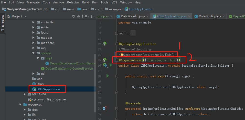 解决办法,在启动类上加注解,将注解1换为2处注解,问题即解决