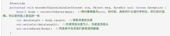// 编码 pipeline.addLast(new LengthFieldPrepender(4));