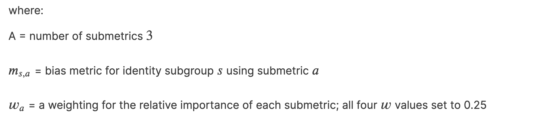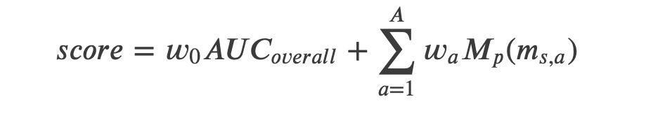 - BPSN 𝐵𝑎𝑐𝑘𝑔𝑟𝑜𝑢𝑛𝑑𝑃𝑜𝑠𝑖𝑡𝑖𝑣𝑒,𝑆𝑢𝑏𝑔𝑟𝑜𝑢𝑝𝑁𝑒𝑔𝑎𝑡𝑖𝑣𝑒 AUC
