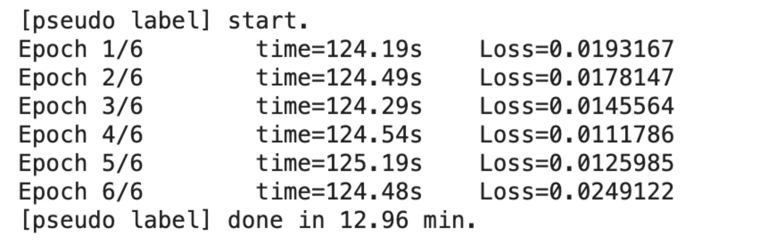 - 最终训练过程与获取伪标签的过程基本类似,使用的优化器及损失函数均相同。