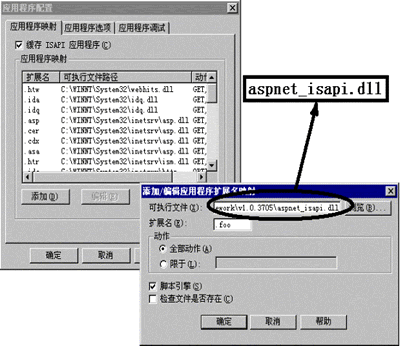 为了运行ASP.NET应用,IIS需要以下两个文件:ASPNET_ISAPI.DLL和ASPNET_WP.EXE 。