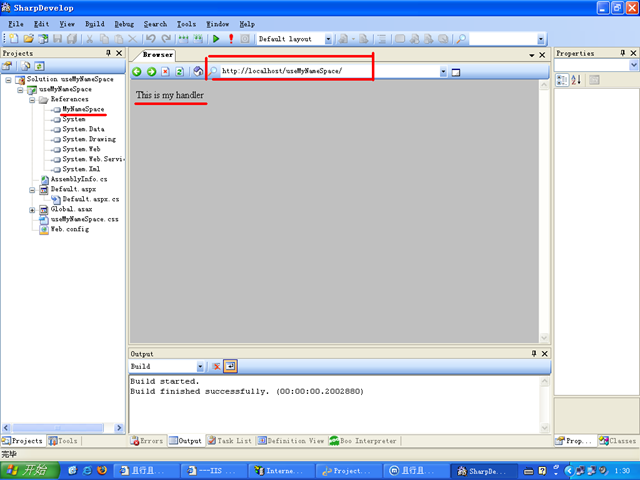 3、建立一个新的WebApplication项目,或打开一个WebApplication项目,将文件MyNameSpace.Dll添加到项目的引用中,或复制到项目的bin目录下;