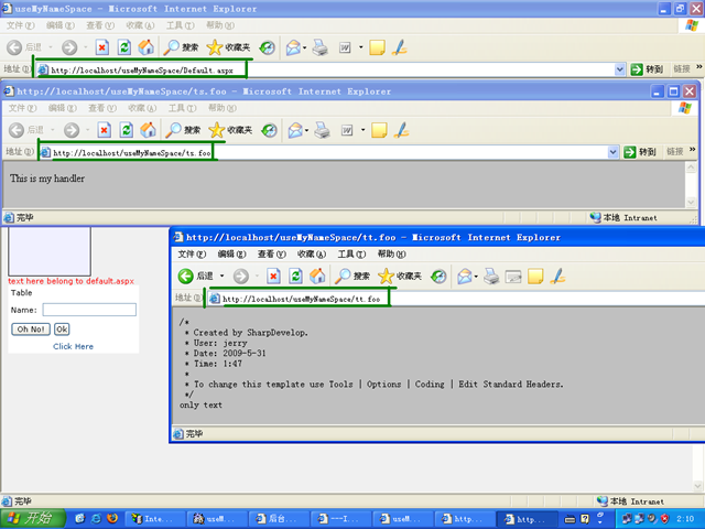 因为,我们自定义的Handler截获了所有发向ASPX页面的请求,并且用自己的的方法来处理这些请求了。