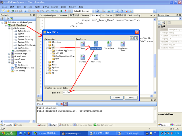 (这里最重要,这个.foo文件在VS2005中要以WebForm的方式添加,而不能以其他方式,如txt文档形式添加),
