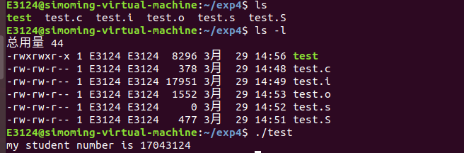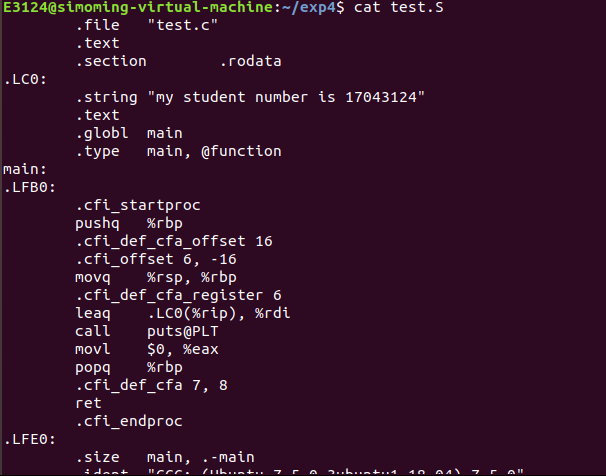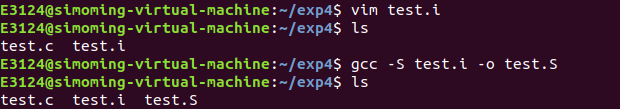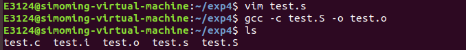 c)汇编(这里test.s为空,没用,编译生成的为test.S)