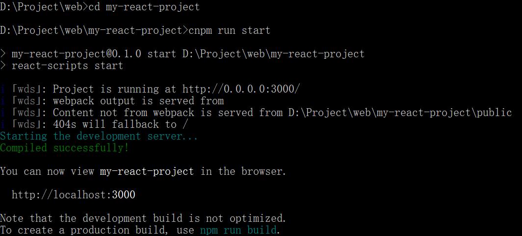 启动成功后会自动打开浏览器,并出现react图标(六芒星),说明项目启动成功。