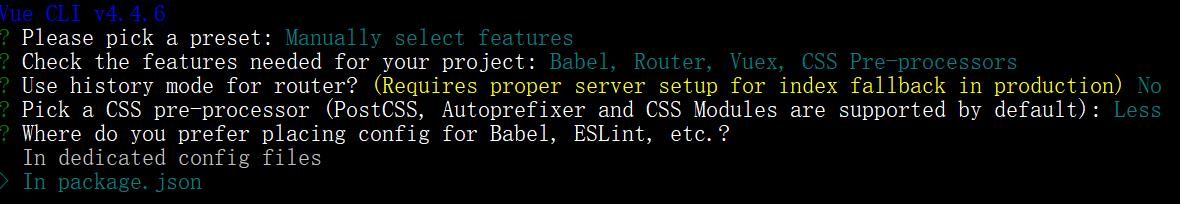5)选择css预处理器(按↑ ↓箭头切换选项,按enter确定选择)