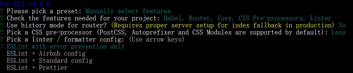 附5)选择Eslint代码验证规则(按↑ ↓箭头切换选项,按enter确定选择)