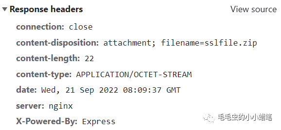 接口响应的content-type是application/octet-stream,并且content-disposition是attachment; filename=sslfile.zip。