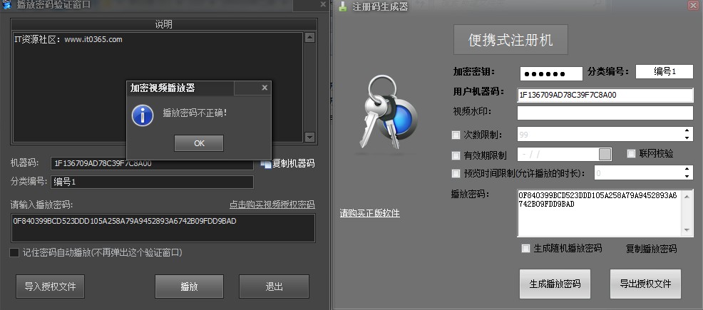 注册机有了,加密视频也有。只是不知道密钥而无法生成正确密码。如果能找到这个密钥带入注册机,能否生成对的播放密码?