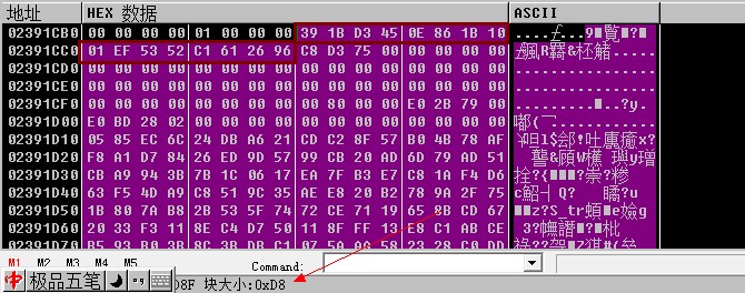 直接在内存窗口跳转到 0x2391D90 向前翻0XD8字节后,复制0X10字节就是密码。用提取工具解密时的密码参数就成功获取了。