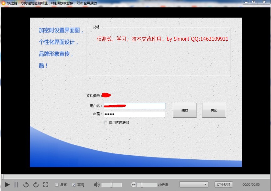 记录金盾加密视频播放器联网登陆用户名水印去除修改