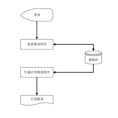 被调用:信息输入和工薪 调用: 输入:事务 输出:事务 处理:接收从CRT终端输入的事务信息并将失物信息存储到数据库中 局部数据源寺:零件编号、事务类型、事务编号、时间、零件数量