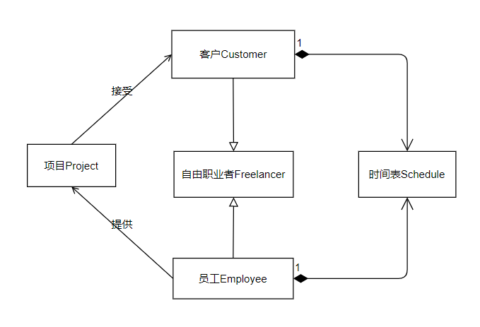 一个客户对应一个自由职业者,一个自由职业者对应零到一个客户。