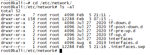 root@kali:/etc/network# vim interfaces