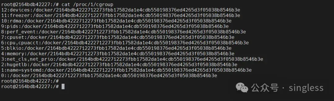 或者可以直接通过查看cgroup信息中是否包含docker字样来判断。在容器技术中,cgroup主要用作资源管理和隔离。