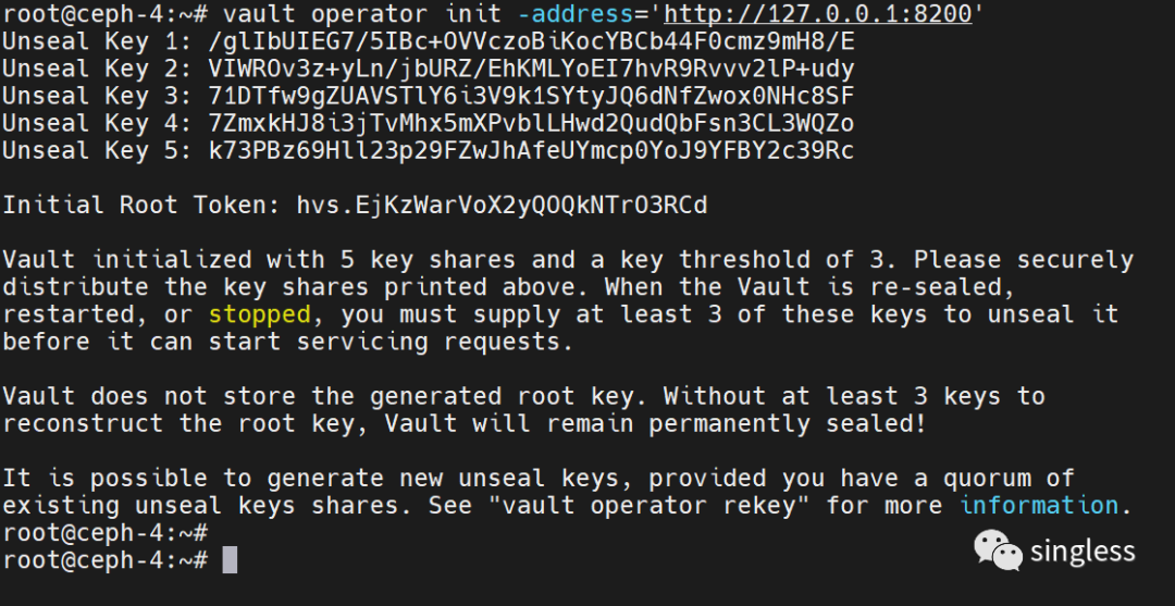 root@ceph-4:~# vault operator init -address='http://127.0.0.1:8200'