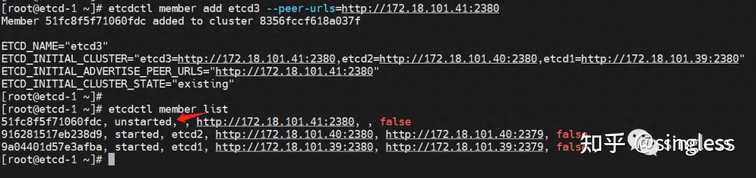 [root@etcd-1 ~]# etcdctl member add etcd3 --peer-urls=http://172.18.101.41:2380