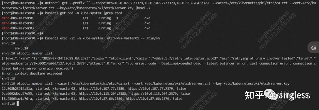[root@k8s-master01 ~]# kubectl exec -it -n kube-system etcd-k8s-master01 -- /bin/sh