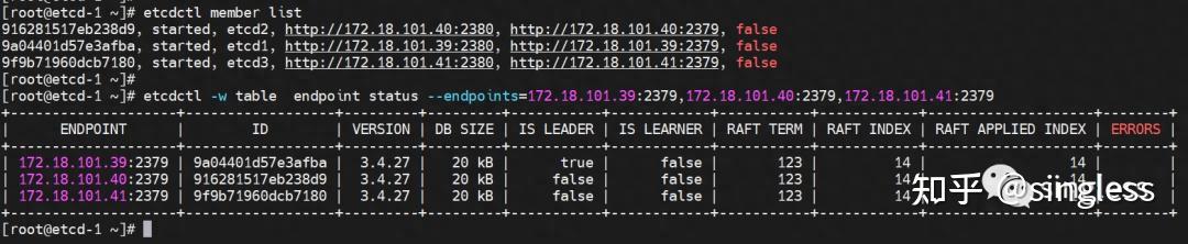 9a04401d57e3afba, started, etcd1, http://172.18.101.39:2380, http://172.18.101.39:2379, false