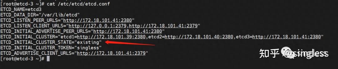 ETCD_INITIAL_CLUSTER_STATE="existing" ##修改为existing