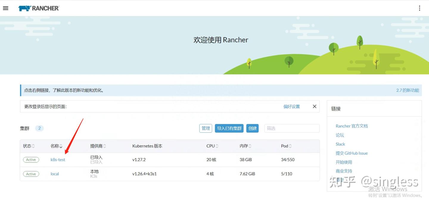 再次检查可以发现k8s集群已被racher管理,且状态为active
