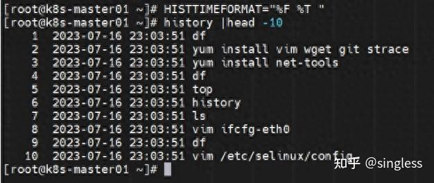 [root@k8s-master01 ~]# HISTTIMEFORMAT="%F %T " #历史记录中加上年月日及时间