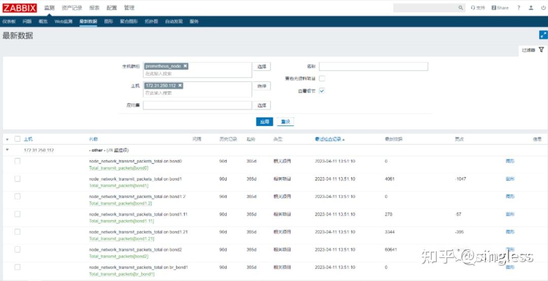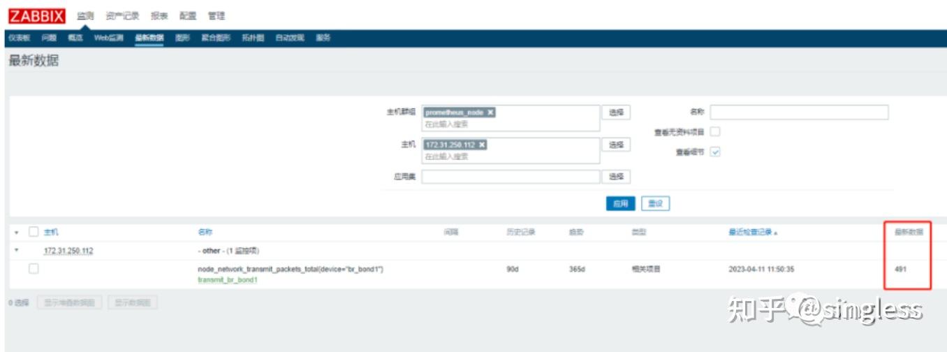 点击监测-->最新数据,可以看到各项监控项的监控数据