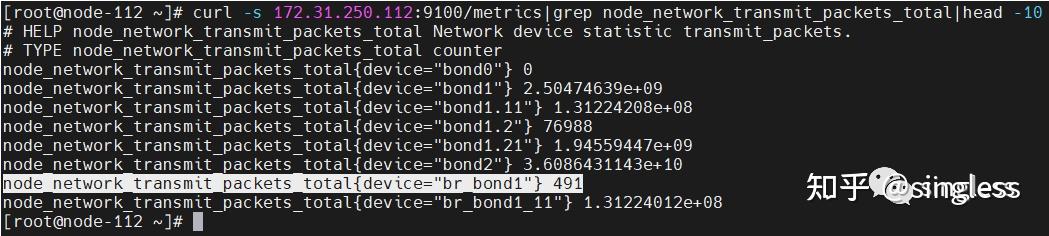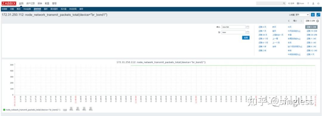 - 参数:node_network_transmit_packets_total{device="br_bond1"}。参数的形式为"metric name{label name = label value}",根据具体的监控项而定。