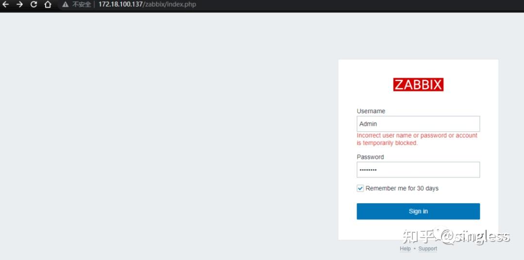 配置完成以后即可登录zabbix,默认zabbix的用户名为Admin,密码为zabbix