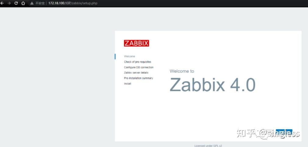ui上输出zabbix服务器地址加/zabbix即可访问到zabbix初始化页面