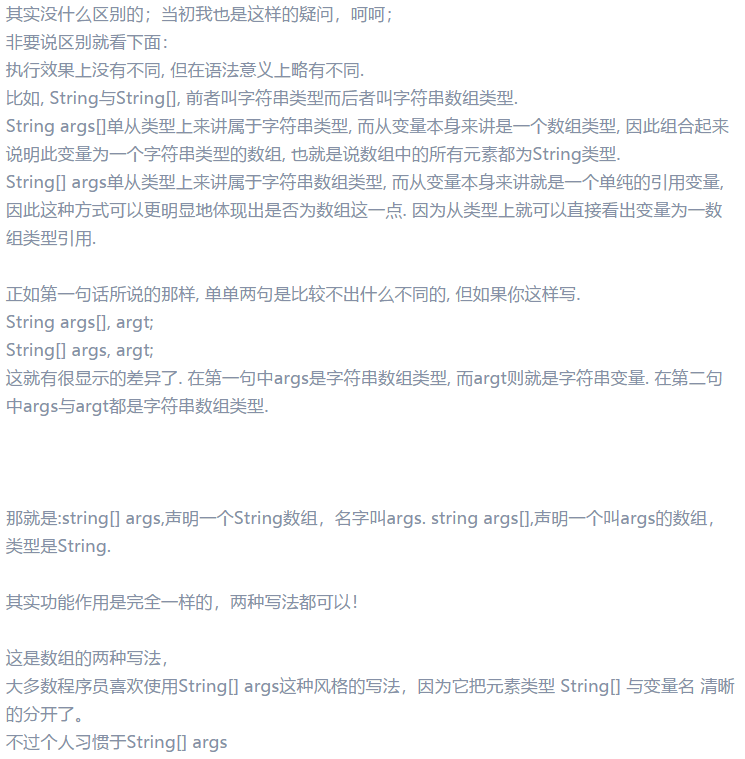 4、String[] args与String args[]的区别: