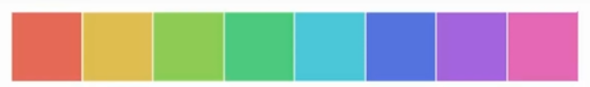 sns.palplot(sns.color_palette("hls",8)) // hls是一个默认的颜色空间 设置8代表想将颜色均匀地分成8等份,可以改成别的数字