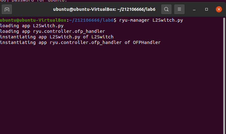 - 创建L2Switch.py文件,并保存在目录/home/用户名/学号/lab6/中