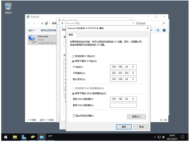 在 Windows Server 2022 AD 域控服务器中配置好本次的 IP 地址和 DNS 地址;