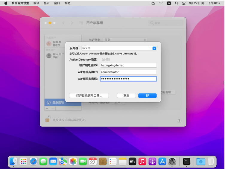 苹果系统 macOS 加入 Windows AD 域