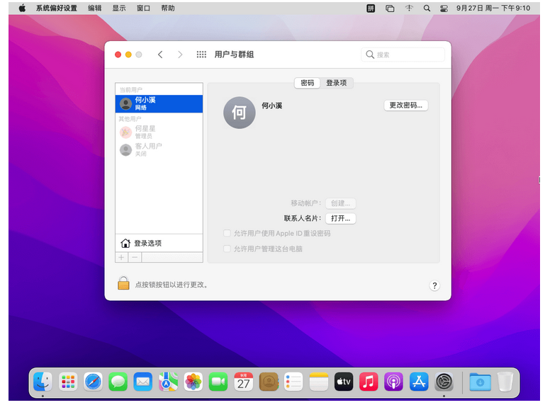 成功进入何小溪域账户,在 macOS 中配置和登录 Windows AD 域账户成功!