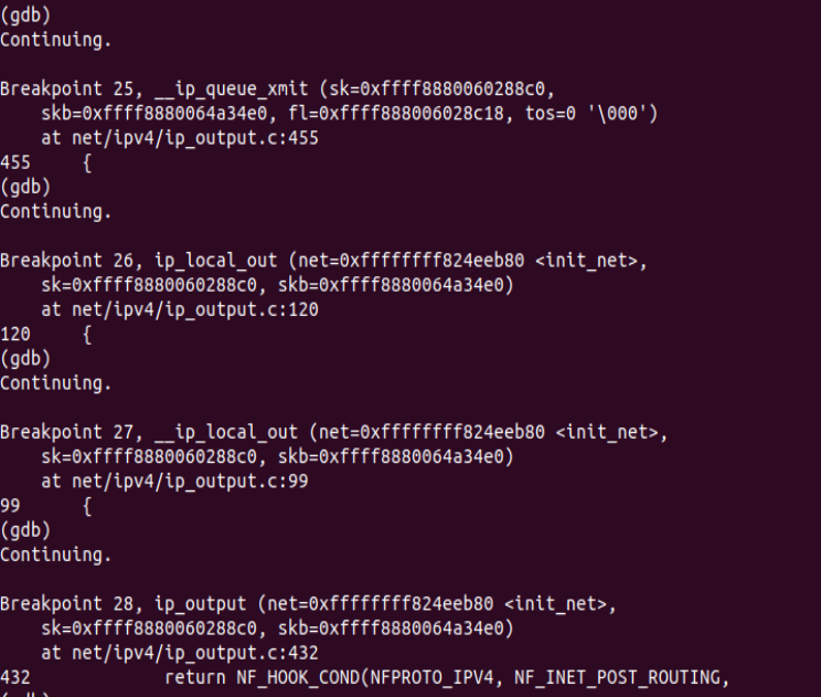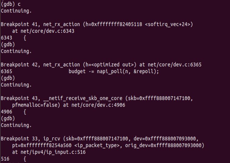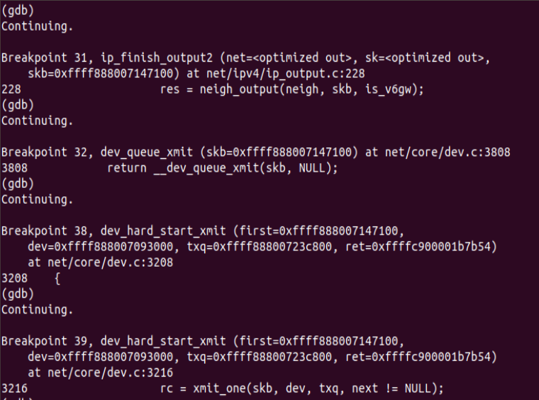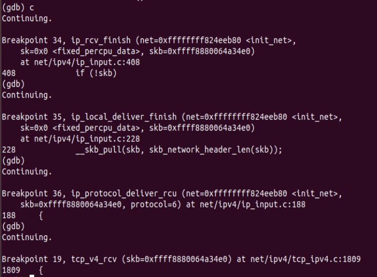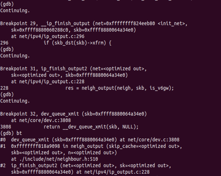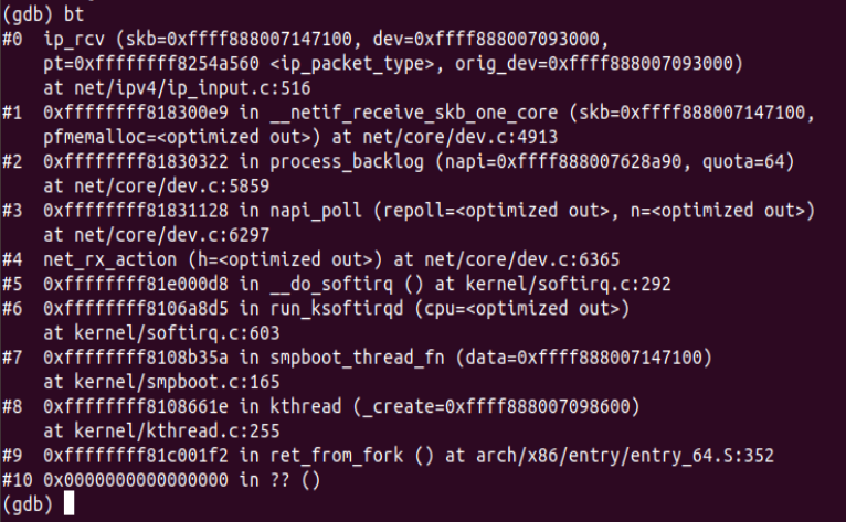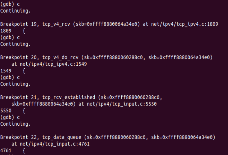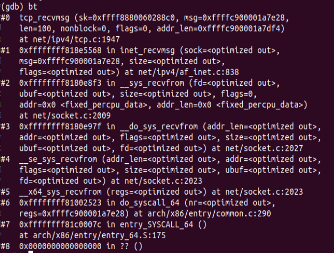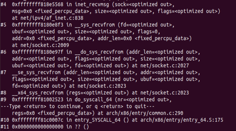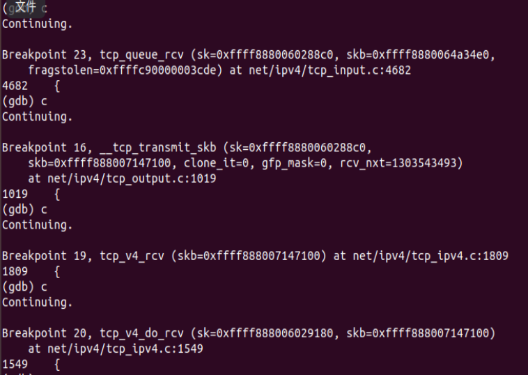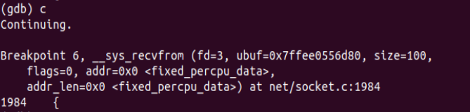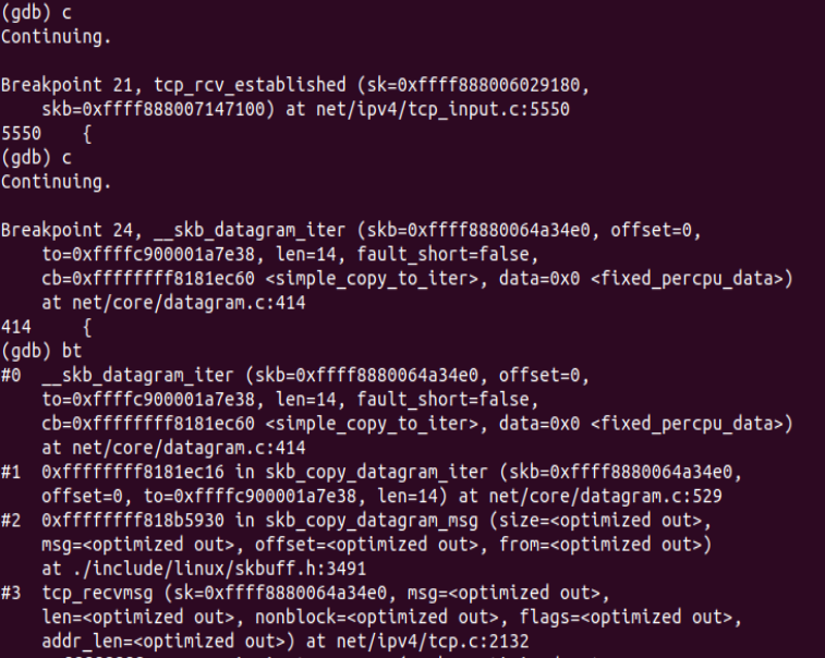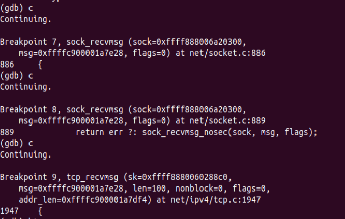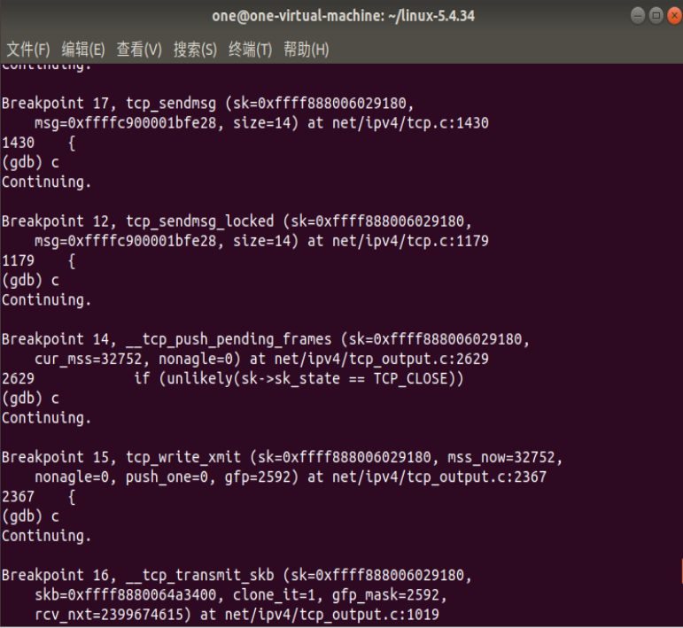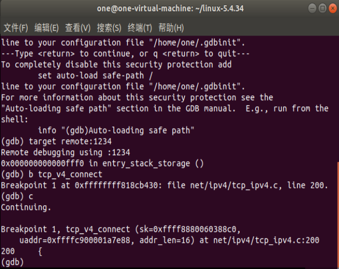 9)创建新终端,启动gdb,加载vmlinux,连接QEMU虚拟机,设置断点。此时gdb所在的中断可以对内核进行断点调试