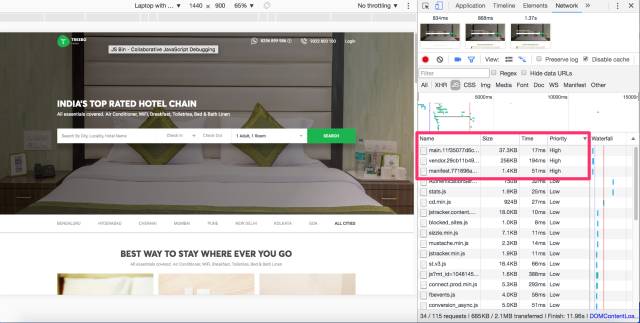 Treebo,印度最大的旅馆网站之一,在 3G 网络下对其桌面版试验,在对其顶部图片和主要的 Webpack 打包文件使用 preload 之后,在首屏绘制和可交互延迟分别减少了 1s。