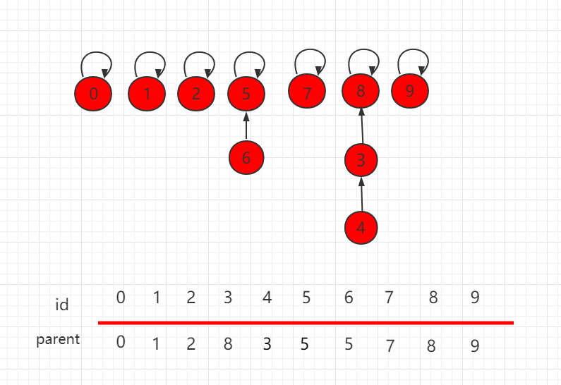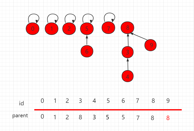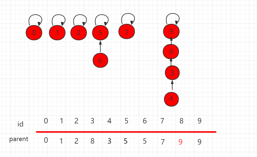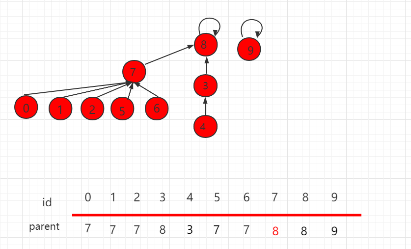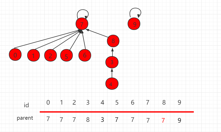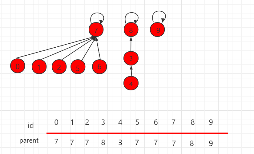 private int[] parent; // parent[i]表示第i个元素所指向的父节点