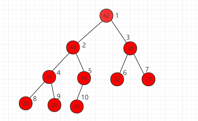 我们可以使用数组存储二叉堆,右边的标号是数组的索引。