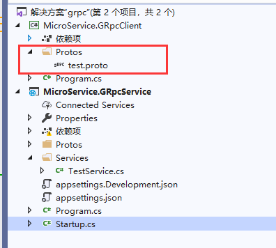 <ItemGroup> <Protobuf Include="Protos\test.proto" GrpcServices="Server" /> </ItemGroup>
