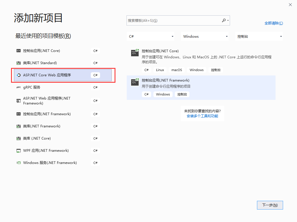 二、熟悉 visual studio 2019 构建.net core 应用的基本流程