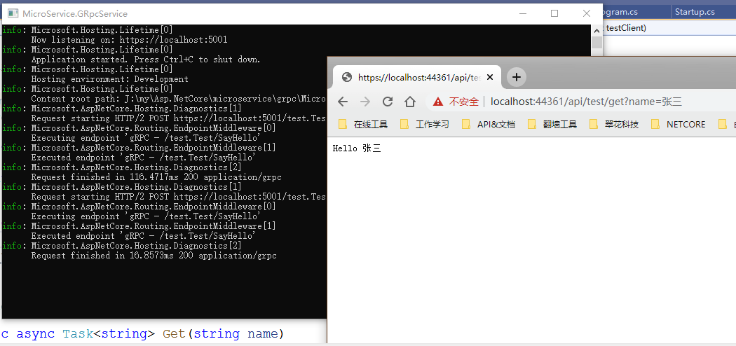 由上面这段代码可以看出,我们把对grpc服务的配置到startup代码。这样后续再想调用该服务时就不需要再手动管理grpc的生命周期之类的了!