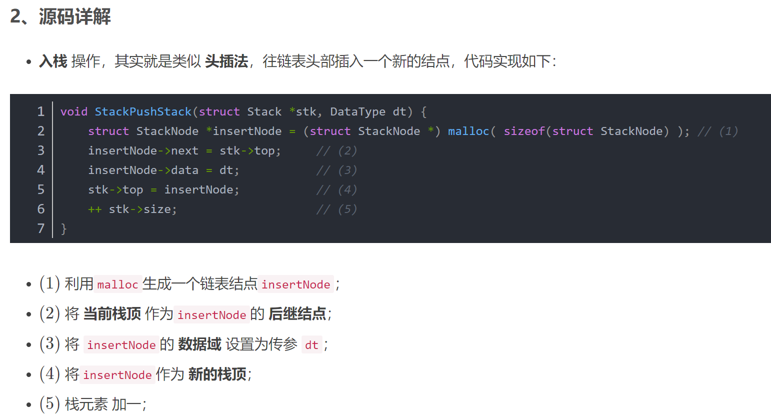 insertNode->next = stk->top;