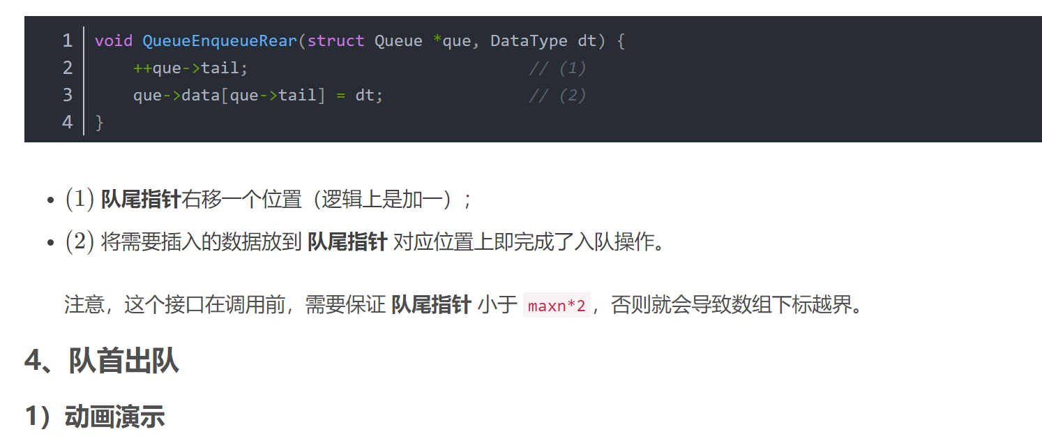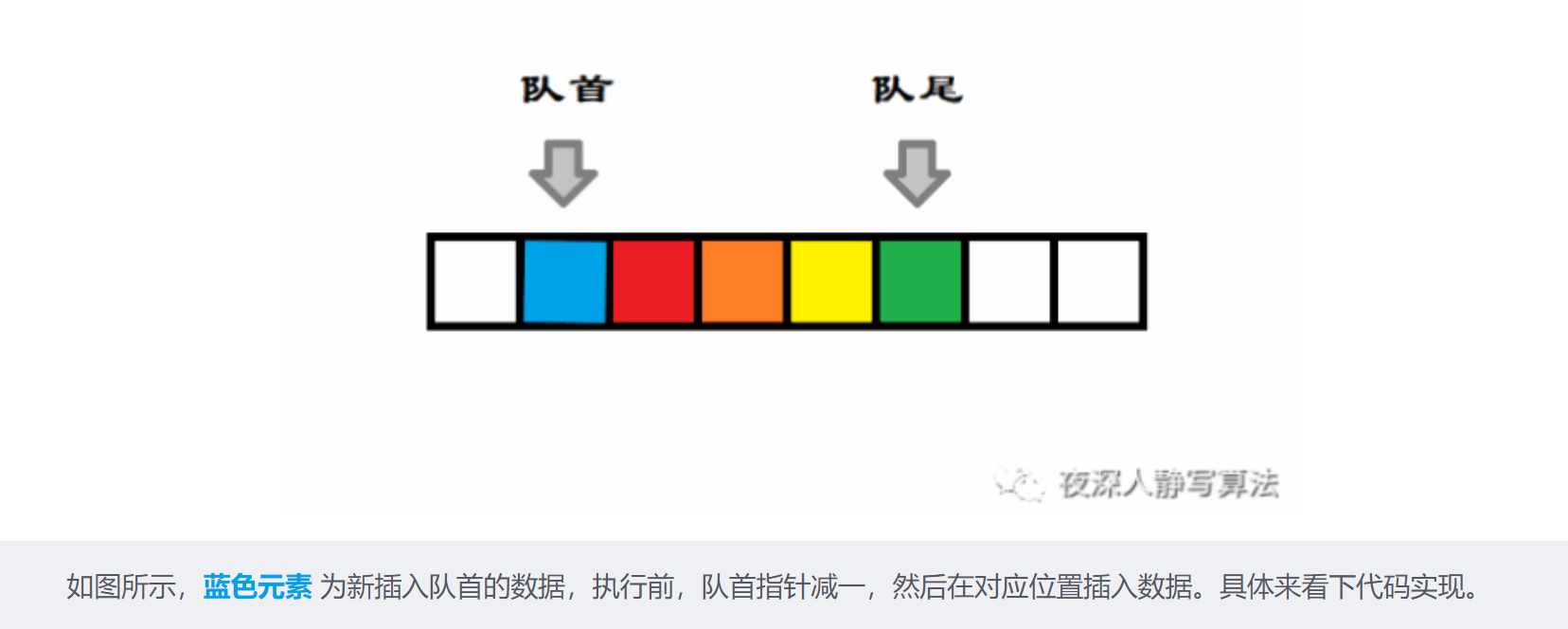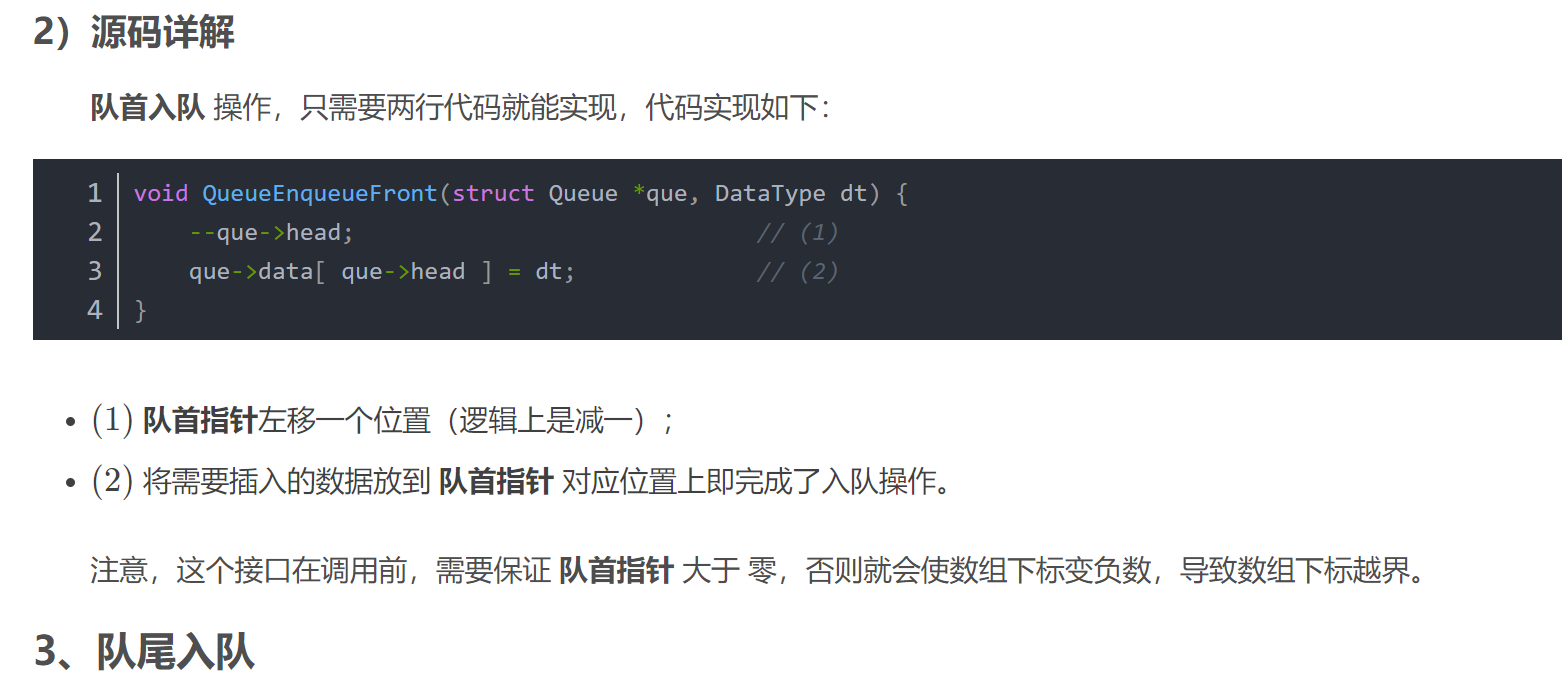 void QueueEnqueueFront(struct Queue *que, DataType dt) {