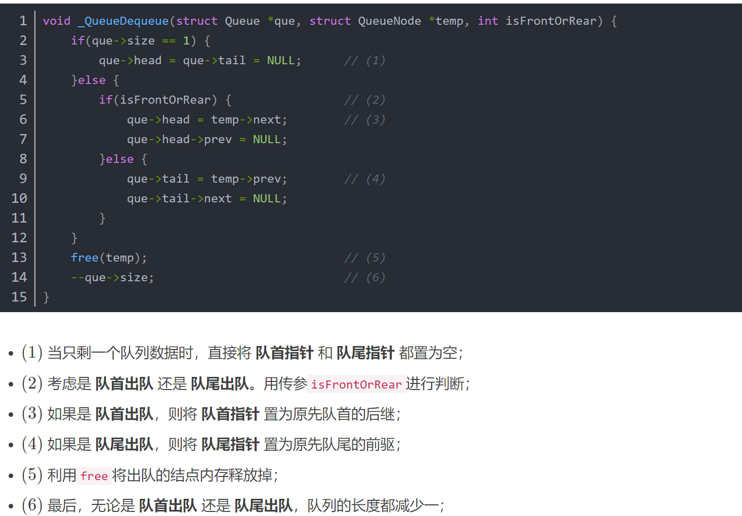 void _QueueDequeue(struct Queue *que, struct QueueNode *temp, int isFrontOrRear) {