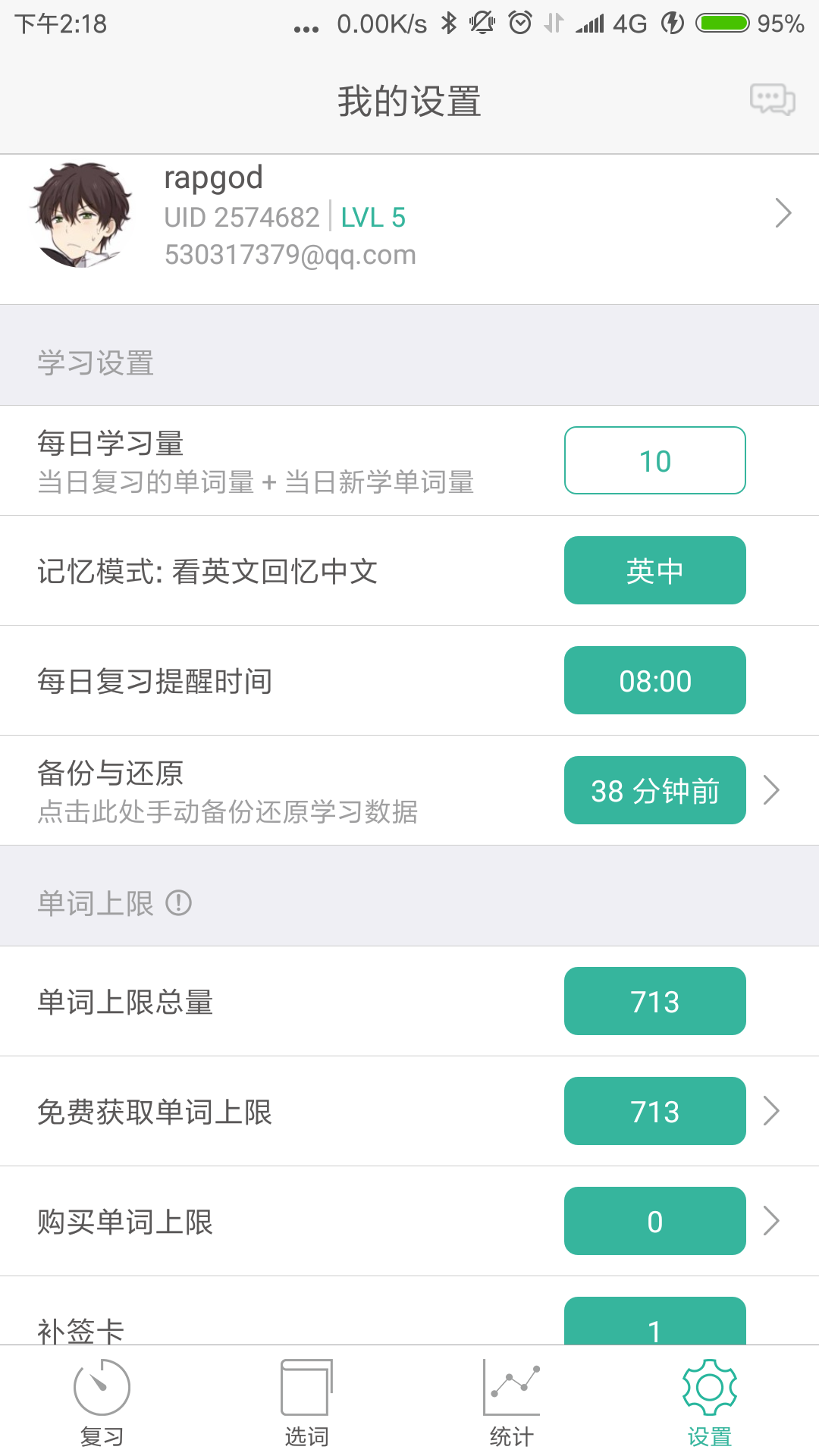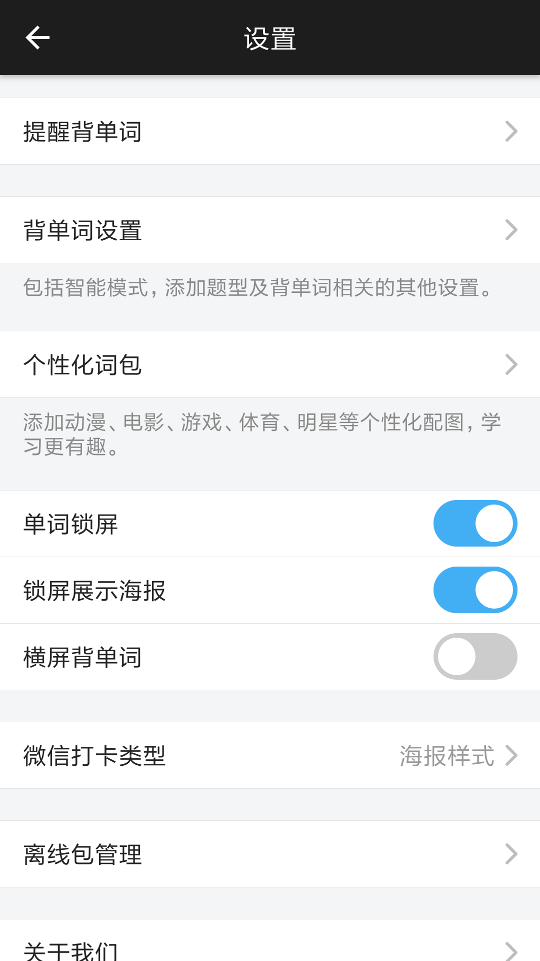 百词斩和墨墨背单词在设置模块中的功能实现上有许多的不同之处: